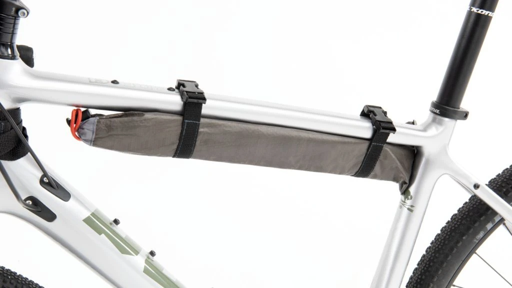 The tent is quickly packed into waterproof bags in the morning with buckles to strap securely on your bike frame or rack.