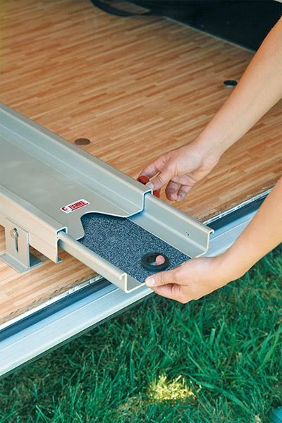 The carry moto system comprises two telescopic aluminium rails. Ideal for installation into the garage facility of your motorhome. Consists of a rail that fixes to the floor of the garage (180cm long X 15cm wide) and a chute which slides easily inside of the fixed rail (155cm long). The rail is supplied with two sturdy straps to fix motorbikes while travelling. It can carry up to 200KG.