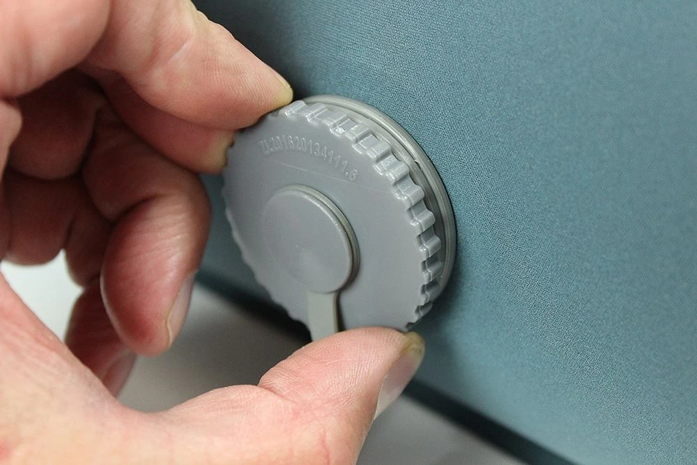The mat is inflated through 2 patented one-way Cyclone Valves that are located at the bottom of the mat which effortlessly inflates and deflates the mat quickly and efficiently every time.