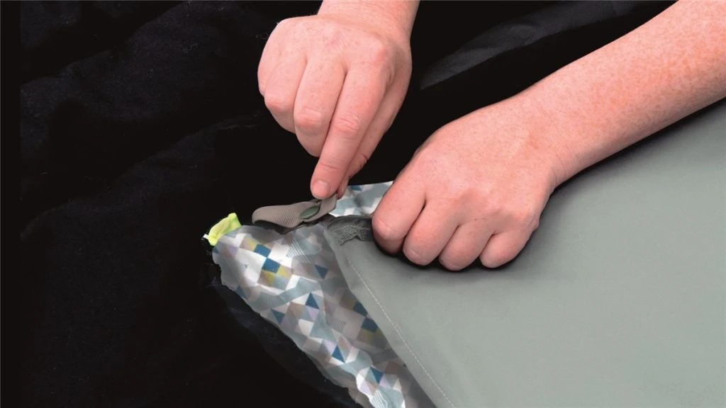 The Outwell Double Cotton Liner is easily attached and detached with snap button fixing straps fitting through attachment loops at each corner of the bags.