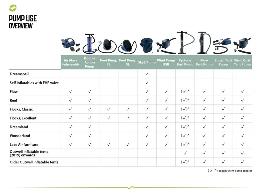Supplied with nozzle options to suit a variety of needs, The Outwell manual pump is perfect for airbeds