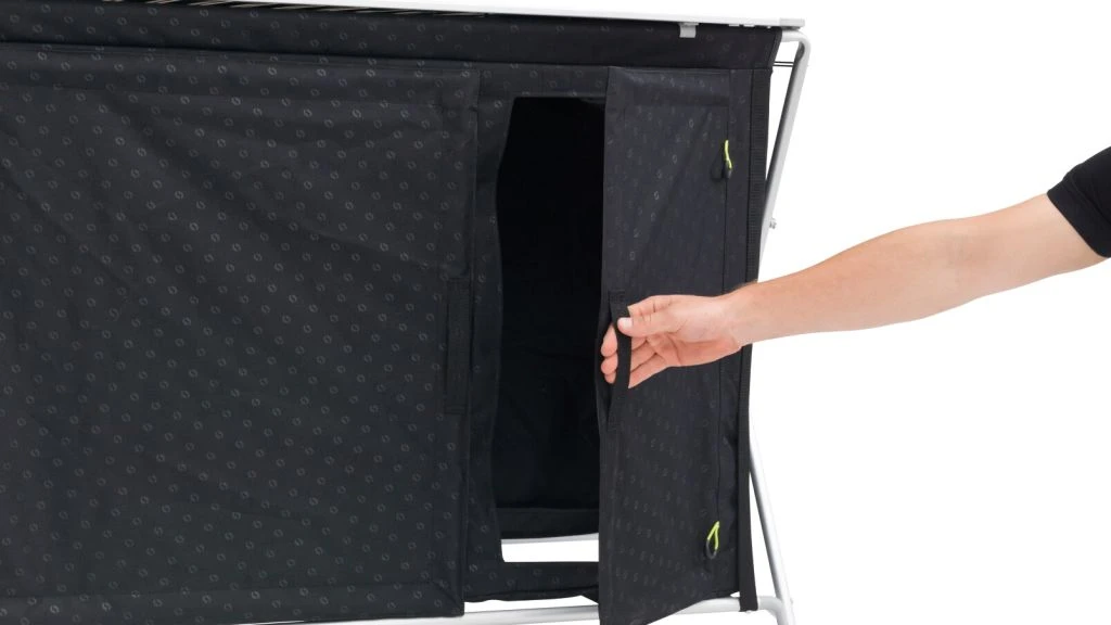 With a solid door and handle to provide a noise free and home-like easy access to storage space as well as magnets to seal the door to cabinet.