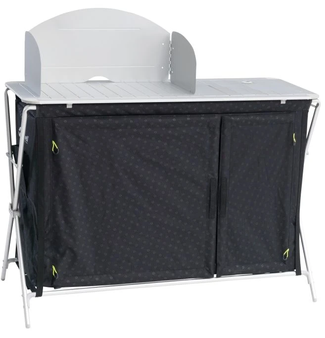 The table top is also aluminium and includes a collapsible water basin that is easily accessible through the table top.