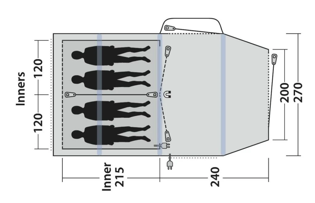 - Reliable, easy-to-operate inflate/deflate valves conveniently placed outside the flysheet