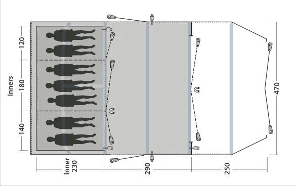 - Reliable, easy-to-operate inflate/deflate valves conveniently placed outside the flysheet