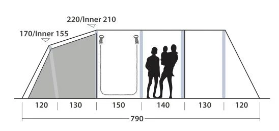 Sleeping up to seven in three spacious inners, it’s ideal for larger families or for sharing with friends.