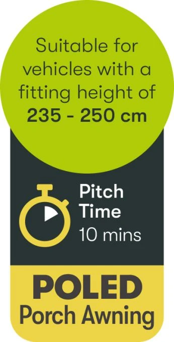 The Falcon is a porch awning the awning slides into your awning channel as normal but then slides round to the flat part of your awning channel. It then comes down the side of your caravan (or another vehicle). The Falcon can go down over a window, but you may not want to as this stops your window from being able to open and can leave a gap underneath and on top of the window. So for the best fit, first measure the flat part of your awning channel and this is your maximum length. Then decide where the awning can go (either including or excluding windows) and this gives you, your best size. As the Falcon is a poled annexe the canvas is easier to pack down and away than its air rivals, as without the air beams inside the canvas you’ll find it easier to fold and roll away into its carry bag. Then match that to the sizes shown in the table below.