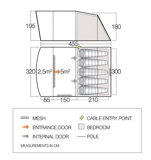 Sentinel Experience fabric keeps pack size and weight low, while ensuring Vango quality and durability. Nightfall bedrooms ensure you sleep in longer and pre-attached front canopy provides a great area for dining and relaxing.