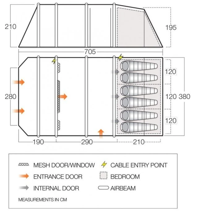 - Inflatable AirBeam® Structure – With 10 years of experience in AirBeam® technology, we are the leaders in pole-free pitching. AirBeam® technology ensures your tent is erect within a matter of minutes, creating a strong and rigid structure allowing you peace of mind and more time to enjoy your holiday (Supplied with a double action pump)